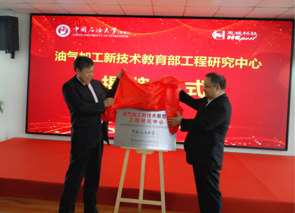 金秋十月,在喜迎伟大祖国69华诞、中国石油大学(华东)65周年校庆之际,10月3日上午,“油气加工新技术教育部工程研究中心”揭牌仪式在我公司研发中心隆重举行。中国科学院院士朱日祥;中国工程院院士孙金声;清华大学化学工程系反应工程实验室主任、长江学者魏飞;中国石油大学(华东)校长、中国科学院院士郝芳和中国石油大学(华东)副校长操应长带领中国石油大学(华东)相关领导10余人;青岛西海岸新区工委区委常委、组织部部长逯鹰;区政府副区长隋斌;董家口经济区管委副主任刘春雷;新区发展和改革局、工业和信息化局、科学技术局等部门的负责同志;我公司董事长、总经理张新功及副总经理等领导和嘉宾出席揭牌仪式。