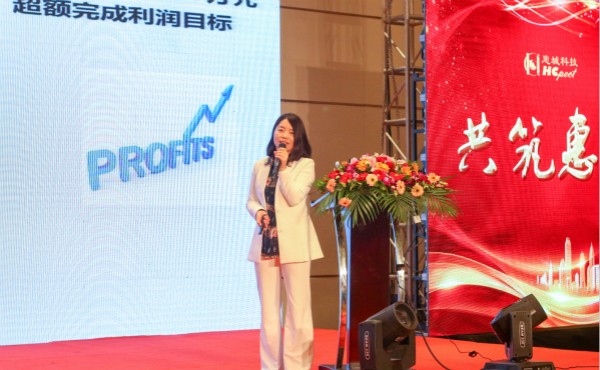首先,常务副总经理叶红汇报了2018年的工作情况,过去一年各部门凝心聚力,突破瓶颈,超额完成生产、销售等任务,实现了利润收入的持续增长。然后,董事长张新功以公司管理目标为主线,结合公司的战略发展规划,讲述并指出2019年是公司发展的转折点、新起点,在此节点上全体员工要努力奋斗,因为唯有奋斗才能创造幸福,并由此揭开此次年会的主题——奋斗点亮幸福。