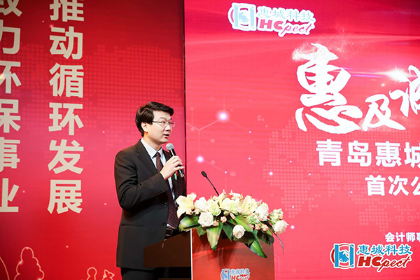 5月21日晚,青岛惠城环??萍脊煞萦邢薰旧鲜写鹦痪苹嵩谏钲诨瘸侵藜示频曷≈鼐侔臁G嗟菏械胤浇鹑诩喙芫指本殖ね跷肮?、青岛西海岸新区副区长邵睿、青岛西海岸新区财政局局长王延军、中国石油大学(华东)副校长姚军、投资机构领导、保荐机构领导等人出席了答谢酒会。青岛西海岸新区副区长邵睿、青岛惠城环保科技股份有限公司董事长张新功、中德证券有限责任公司首席执行官段涛祝酒致辞,正式开启惠城环保上市答谢盛宴。