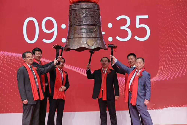 5月22日上午,青岛惠城环??萍脊煞萦邢薰旧鲜幸鞘皆谏钲谥と灰姿?楼大厅正式启动。青岛市地方金融监管局副局长王伟光、青岛惠城环??萍脊煞萦邢薰径鲁ふ判鹿?、中德证券有限责任公司首席执行官段涛致辞,随着开市宝钟的敲响,惠城环保正式上市。