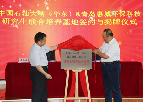 7月15日下午,“中国石油大学(华东)与青岛惠城环??萍佳芯可吓嘌?/span>”揭牌仪式在公司研发中心隆重举行,中国石油大学(华东)副校长、研究生院院长李兆敏,研究生院常务副院长阎子峰及学校其他领导、老师,我公司董事长张新功、常务副总经理叶红携公司核心技术人员及入学石大的学生代表共同出席了此次揭牌仪式。