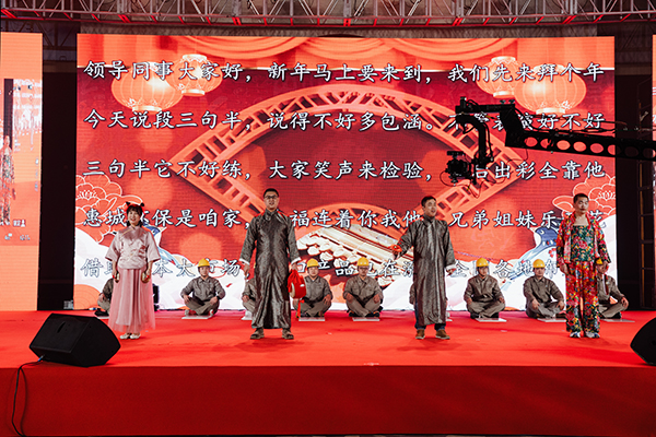 5点30分,文艺晚会正式开始。创意节目精彩纷呈,全场氛围热烈火爆。生产管理部的三句半编排让人倍感新鲜,情景剧“惠城奇幻夜”天马行空,舞美效果将晚会推向高潮,小品“相亲”表演让人捧腹,戏曲与励志歌曲串烧HIGH翻全场……