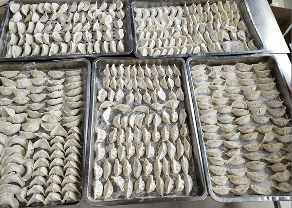 大家齐心协力,用心包出的饺子如一排排元宝华丽亮相。每一个饺子都代表对员工的一份关爱,一份祝福。