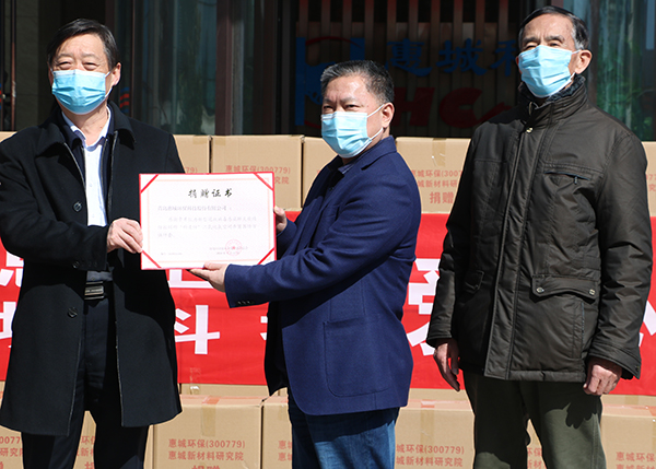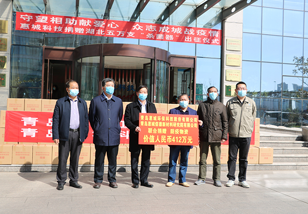 青岛市总工会党组成员,副主席周新国讲到,在全市上下众志成城、抗击新型肺炎疫情的重要时刻,惠城环保向湖北地区捐赠杀菌物资,是企业积极履行社会责任、助力疫情防控的一项爱心捐赠公益活动。